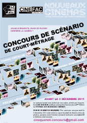 CINE FAC & CINE QUA NON ont le plaisir d’annoncer le lauréat du 8ème Concours de Scénario Nouveaux Cinémas en France :